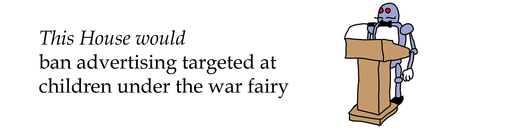 Blog reader Alex Deam suggested that I train a neural net to generate topics, and pointed me toward a spreadsheet of 4,369 British Parliamentary Style debate resolutions. I fed them into a character-level instance of textgenrnn, and it did its best to imitate the human-written topics. Please enjoy these debate topics, suitable for use in the post-human era.